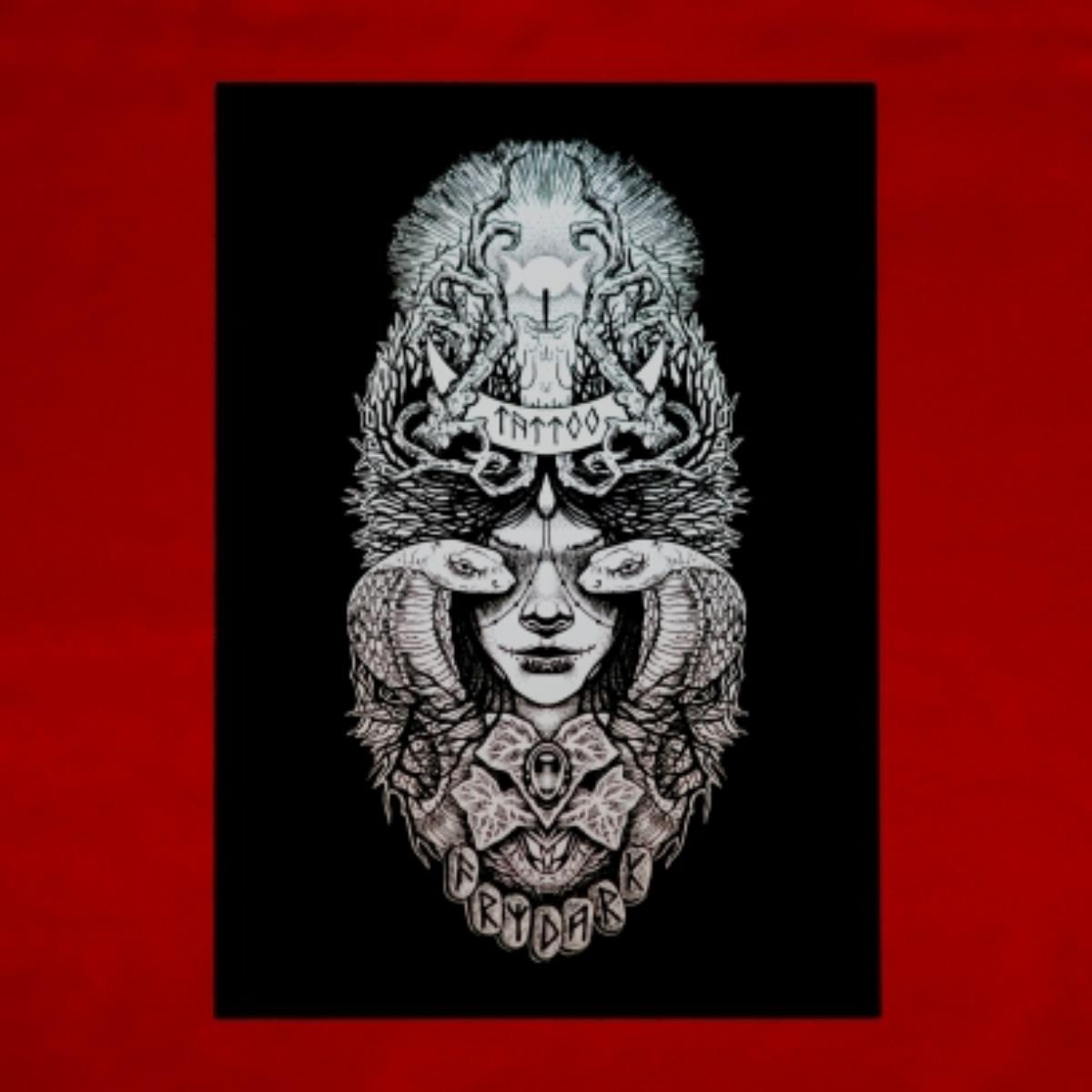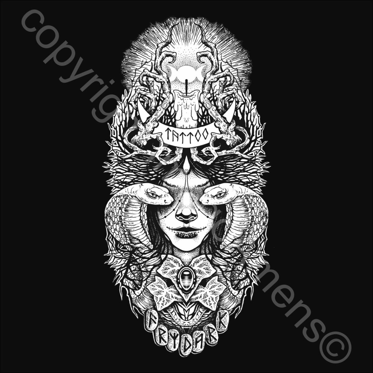 Descrizione artistica: Divinità partorita dalla inventiva di Frida Ghiozzi, una sorta di archetipo della femminilità primordiale, della figura sciamanica in connessione fra i due mondi, quello della natura e quello dello spirito. Riproposto il nickname dell’artista sotto forma di rune, antichi strumenti di divinazione.