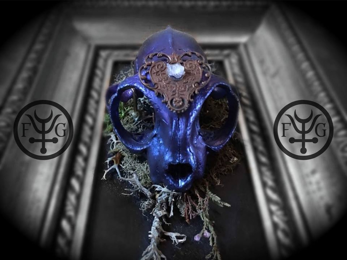 Frida Ghiozzi nasce nel 1986 a Torino dove attualmente vive e lavora come tatuatrice presso lo studio e negozio d’arte Imago Amens. La sua più grande passione è la pittura ad acrilico, che la ossessiona da sempre e che le permette di dare vita a sogni, inferni e fantasie. La sua è una realtà d’ispirazione esoterica e surrealista, dove dal buio emergono entità che appartengono ad un altrove lontano ma allo stesso tempo insito nel profondo della mente umana. La sua dedizione allo studio di filosofie e arti occulte, unito alla passione per l’esplorazione di luoghi abbandonati e sotterranei la porta a collezionare resti di animali che hanno abbandonato lì il loro corpo fisico attraverso la morte. Quello che Frida ci presenterà durante questa serata sarà un elogio artistico alla morte fisica, attraverso l’esposizione di teschi, vertebre e altre ossa di varie creature, decorate e rimodellate o associate a svariate simbologie. La sua passione per il regno animale la spinge così a trasformare spoglie dimenticate in pregiati talismani.