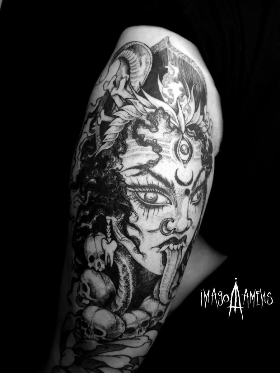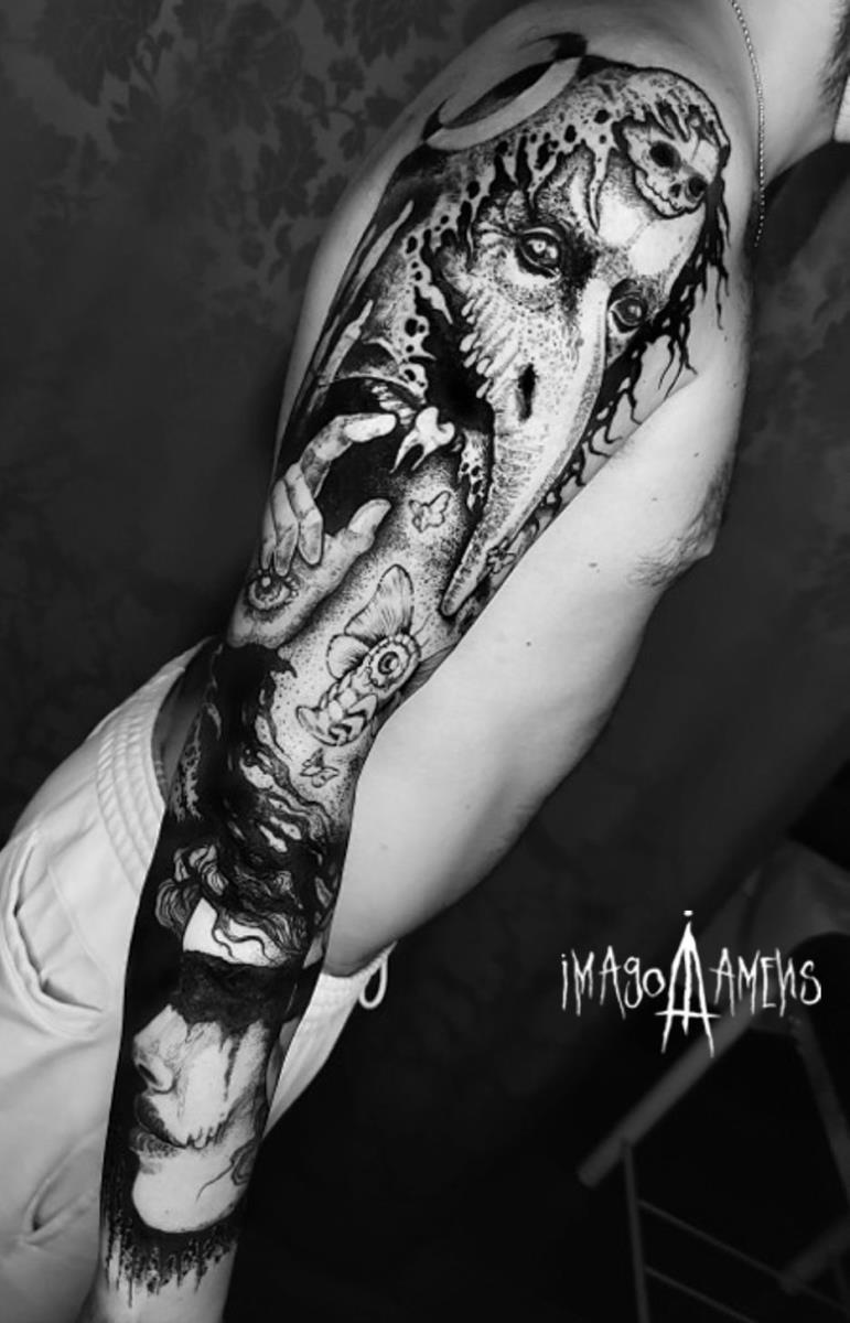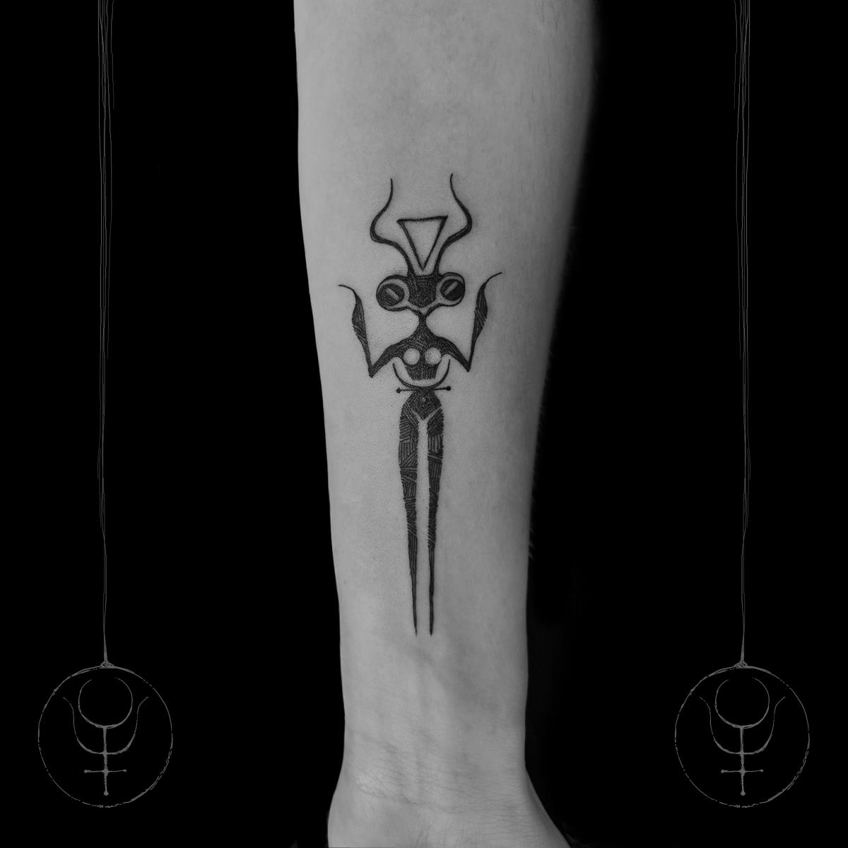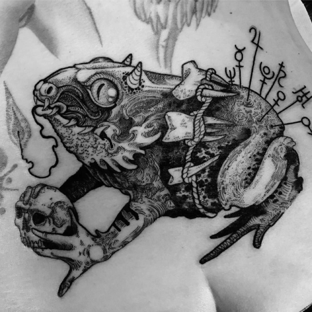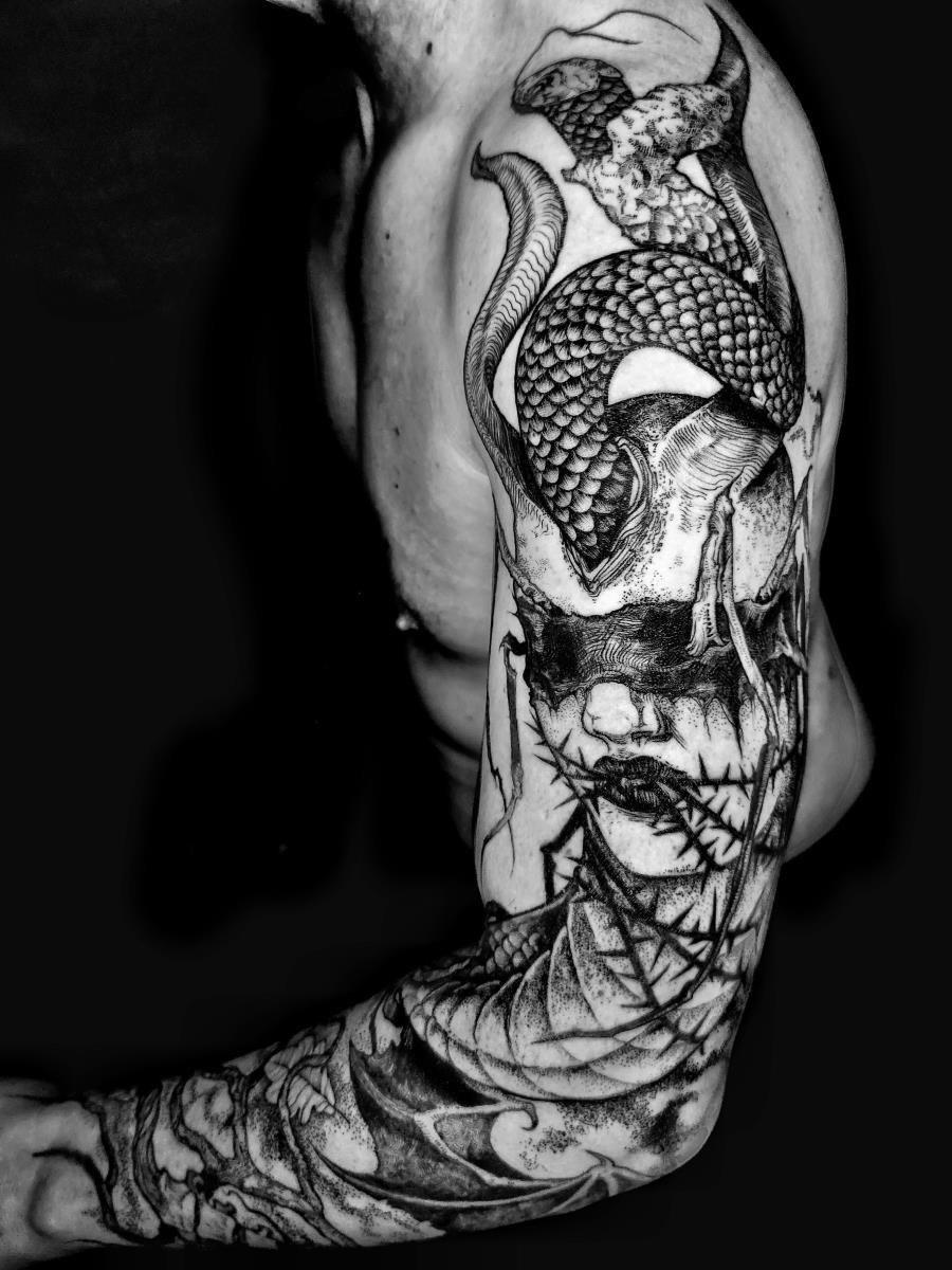 I tatuaggi vengono realizzati totalmente in bianco e nero in una personale tecnica caratterizzata dall'uso del nero puro, grandi contrasti generati da linee, segni e riempimenti graffianti e decisi. La sua passione per l'ombra, l'occulto, i segreti della psiche e il lato misterico della natura emergono nei soggetti da lei interpretati.