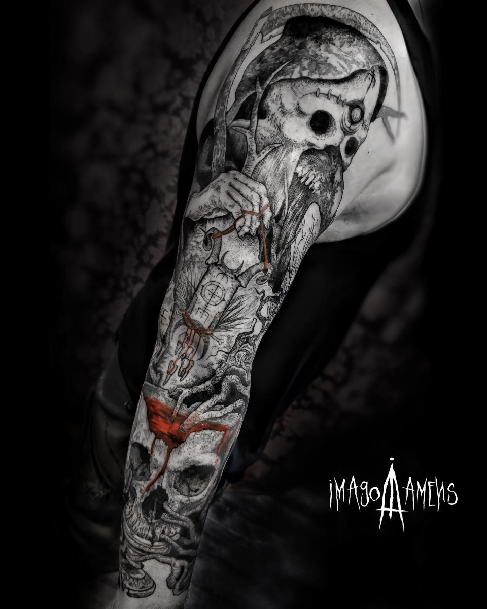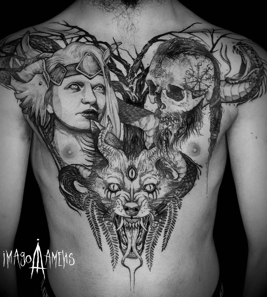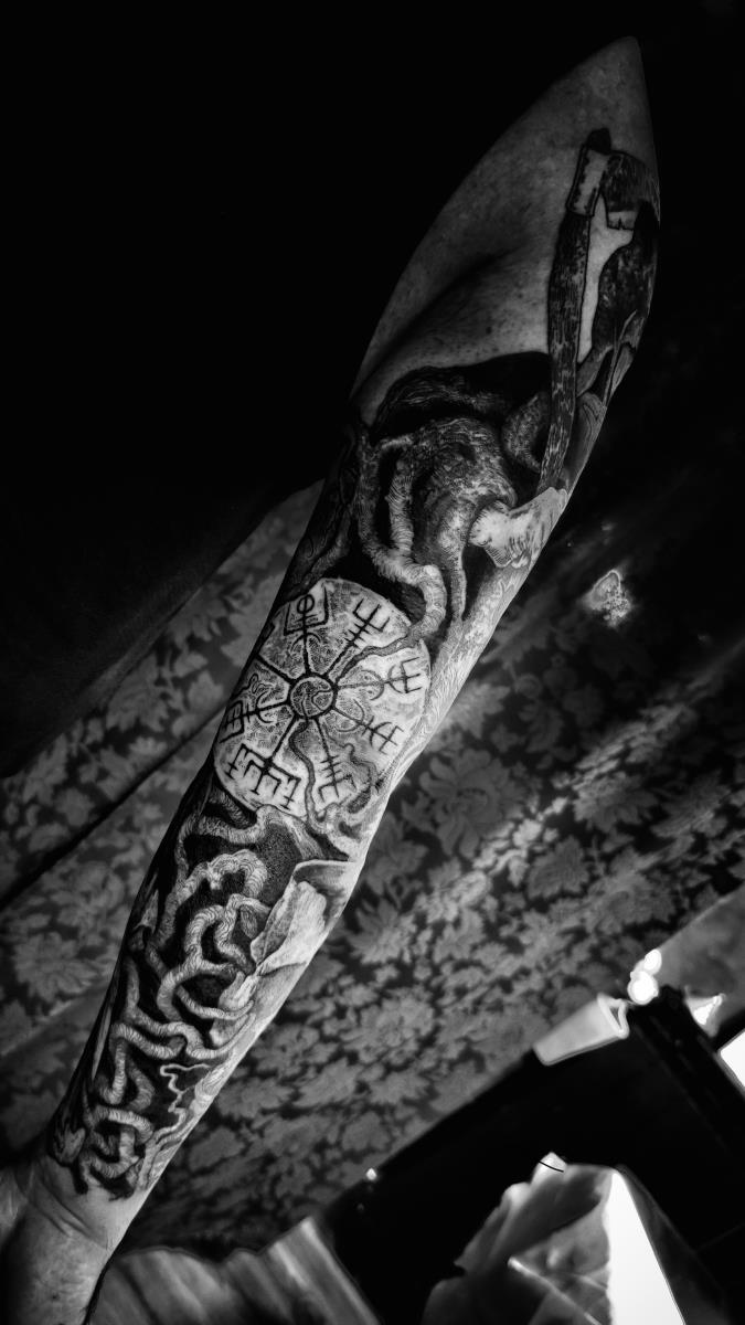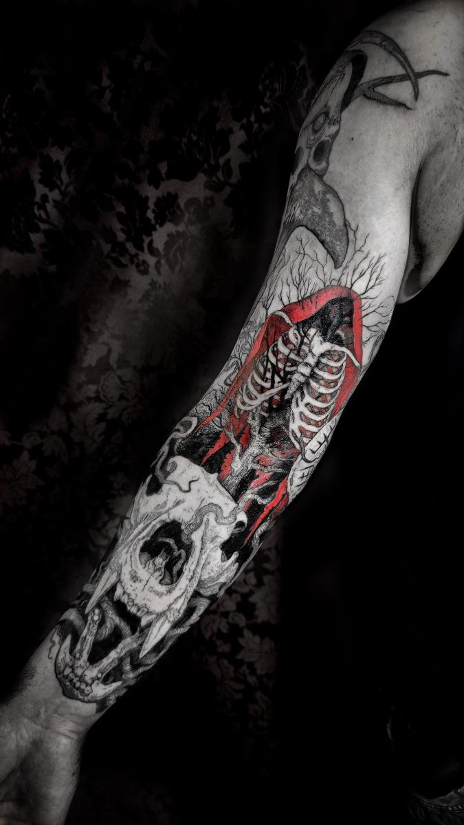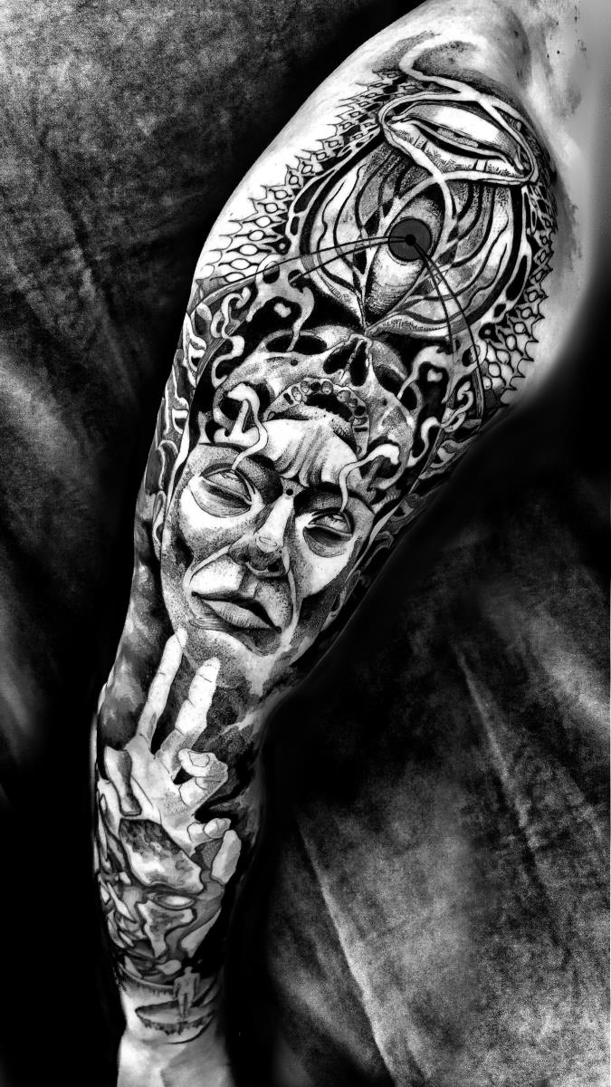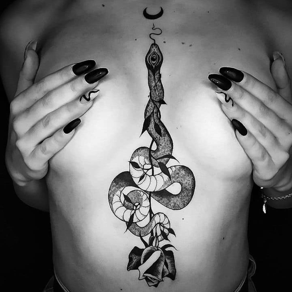I tatuaggi vengono realizzati totalmente in bianco e nero in una personale tecnica caratterizzata dall'uso del nero puro, grandi contrasti generati da linee, segni e riempimenti graffianti e decisi. La sua passione per l'ombra, l'occulto, i segreti della psiche e il lato misterico della natura emergono nei soggetti da lei interpretati.