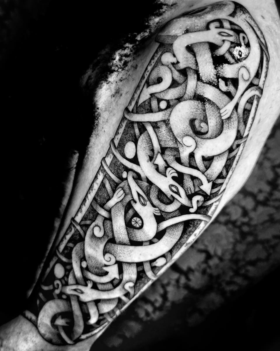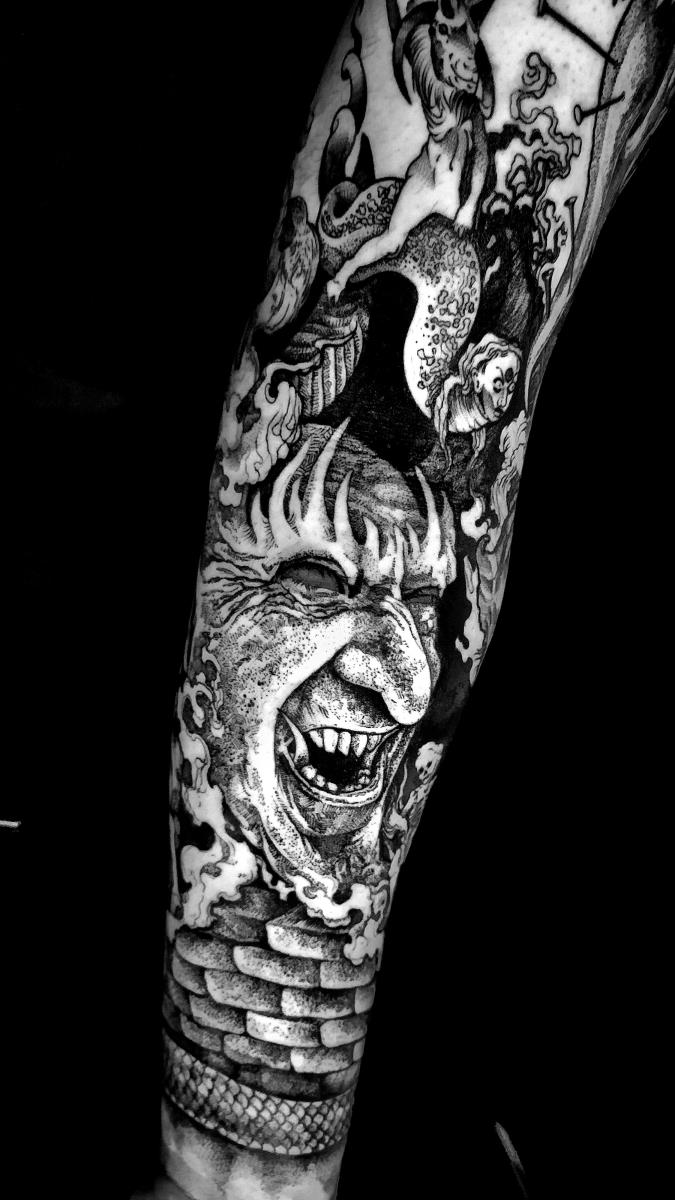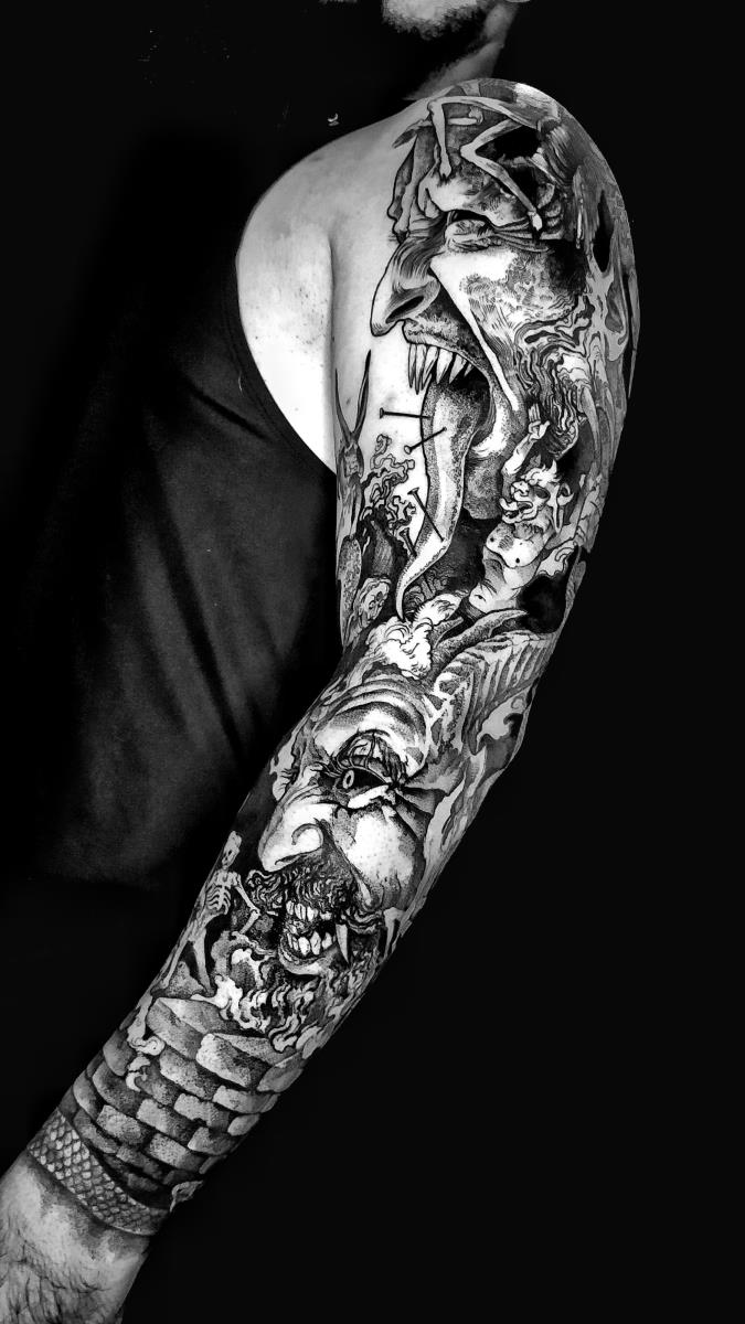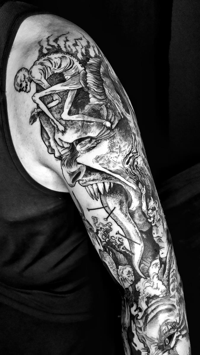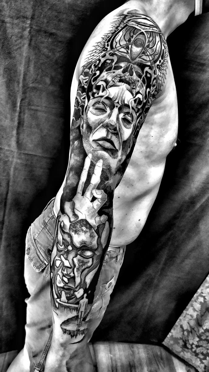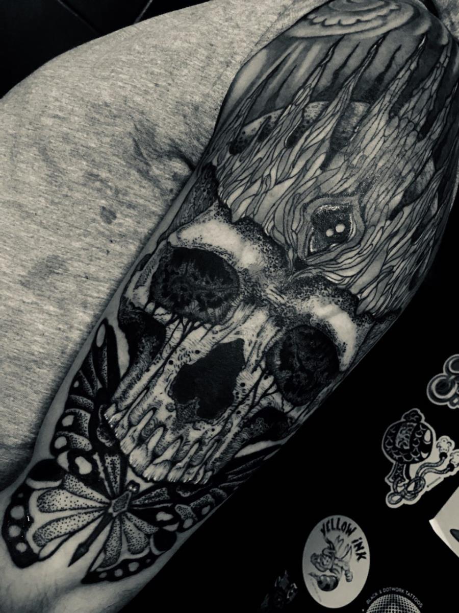 I tatuaggi vengono realizzati totalmente in bianco e nero in una personale tecnica caratterizzata dall'uso del nero puro, grandi contrasti generati da linee, segni e riempimenti graffianti e decisi. La sua passione per l'ombra, l'occulto, i segreti della psiche e il lato misterico della natura emergono nei soggetti da lei interpretati.